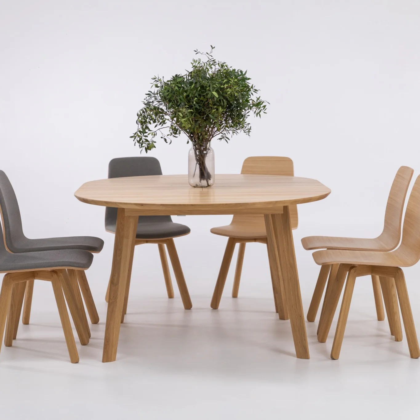 La Saga es una mesa extensible práctica con cuatro patas resistentes. Gracias a su innovador diseño, combina la elegancia de un tablero redondo con la comodidad de una superficie extensible, permitiendo ampliar el área de comedor cuando sea necesario. Es una solución ideal para familias pequeñas y sus invitados. Disponible en roble y haya, con dimetro de 120 cm a 150 cm.