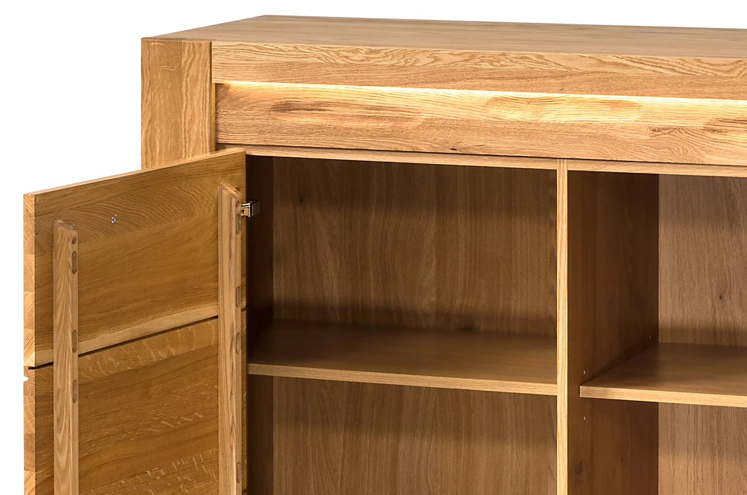 La cómoda aparador Velvet 44 de madera de roble macizo de dos puertas dotará a tu salón o dormitorio de la elegancia nórdica que buscas. La combinación del roble con detalles de acero cepillado en sus tiradores añade modernidad a tu hogar. Alberga gran capacidad de almacenaje. Además puedes combinarla con otros muebles de la colección Velvet.